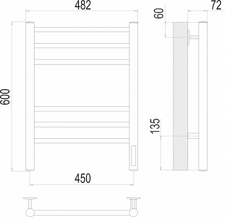 Аврора П6 450х600 электро КС 9005 матовый ( new встроен диммер) Полотенцесушитель TERMINUS